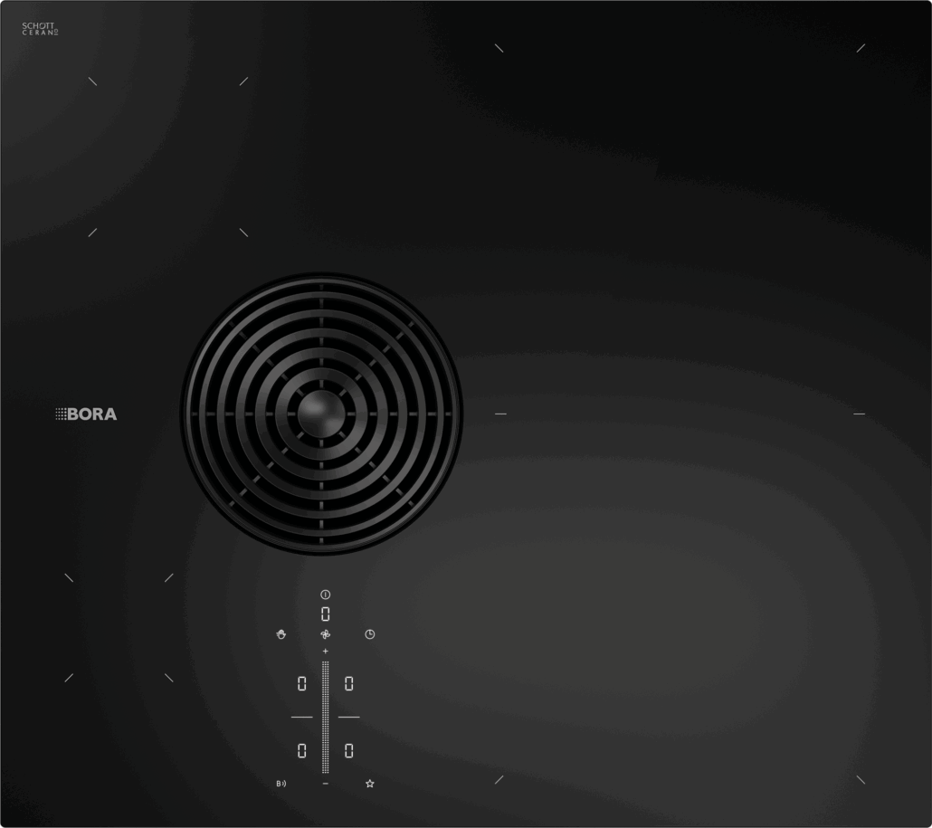 Med sine mål på 580 mm x 515 mm er BORA S Pure den mindste model i Pure-serien og den ideelle løsning til et køkkenmodul på 60 cm. Den har to runde kogezoner og to fleksible kogezoner, der kan kobles sammen. Den smarte udformning gør, at hele kogepladen udnyttes optimalt, samtidig som den lave højde bevarer værdifuld skuffeplads under bordet.